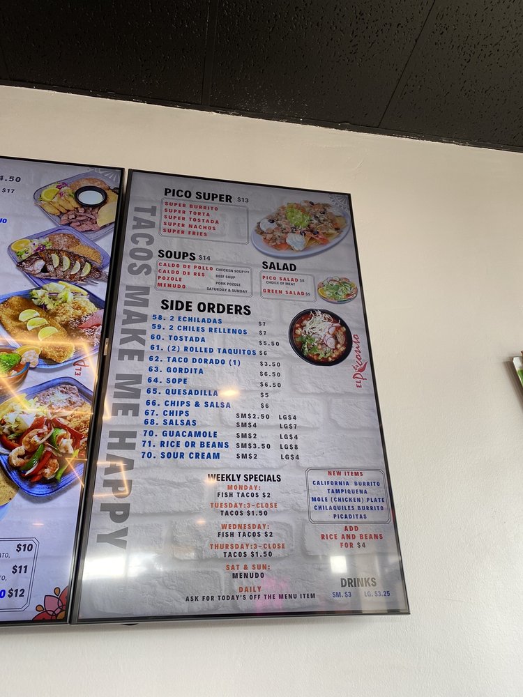 Welcome to El Picosito Taqueria, a Mexican gem located in Orange, CA. This casual spot offers a variety of mouthwatering options, from classic burritos like the Machaca and California burrito to tantalizing Baja menu items such as the Ensenada Burrito and Baja Fish Tacos. Customers rave about the flavorful meats, like the tender cabeza and juicy Al pastor, which can be enjoyed in burritos, tacos, or burrito bowls. The authentic flavors are elevated by the complimentary chips and salsa served with each meal, adding a perfect touch of heat. With excellent service, a cozy ambiance, and wallet-friendly prices, El Picosito Taqueria is a must-visit for Mexican food enthusiasts. Whether you're craving a hearty breakfast burrito or a satisfying taco combo, this place is sure to impress. So, grab a seat outdoors or indoors, sip on a cold beer, and indulge in the rich flavors of Mexico.